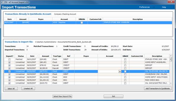 4. The window will be populated by details contained in the Transaction Import File selected. Select the Type of information being entered: Vendor or Customer.