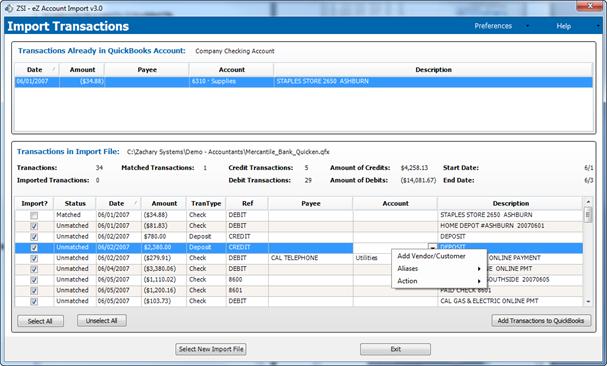 4. Click Review Transactions. The Import Transactions window opens: