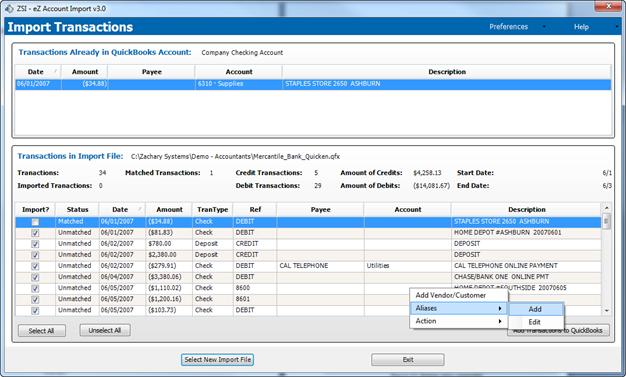 By creating aliases, you are not required to have a one for one match between online transactions and vendors & customers within your accounting software. It also eliminates the possible issue faced when vendors add transaction identifiers, such as store number or date, to transactions.