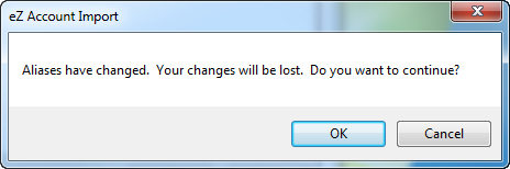 Note: if you have not properly populated all columns for each alias added, the following warning dialog box displays: