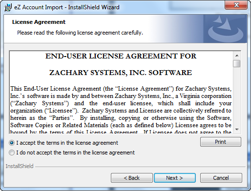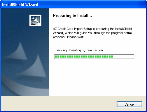 The eZ Account Import application is downloaded from the Internet. Based upon your system configuration, the installation process can take between 2 and 10 minutes with a high speed Internet connection.