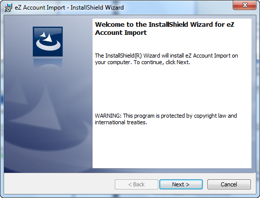 13. The Windows Installer dialog box will close and the Welcome dialog box will be displayed for eZ Account Import.