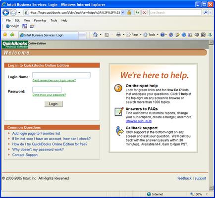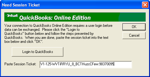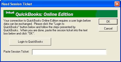12. Click the Login to QuickBooks button and a browser window will be displayed with the QuickBooks Online Edition Login page displayed.
