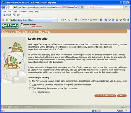 8. Select All Accounting as the Access Rights and click Continue link. The Login Security page is displayed.