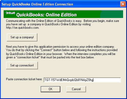Figure 54: Setup QuickBooks Online Edition Connection window
